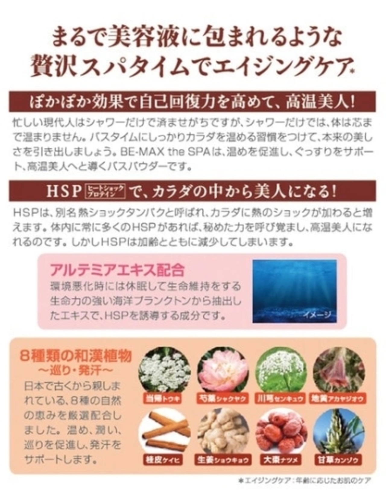 8種の和漢植物エキス: 日本で古くから親しまれてきた植物の力が、カラダを優しく温めます。